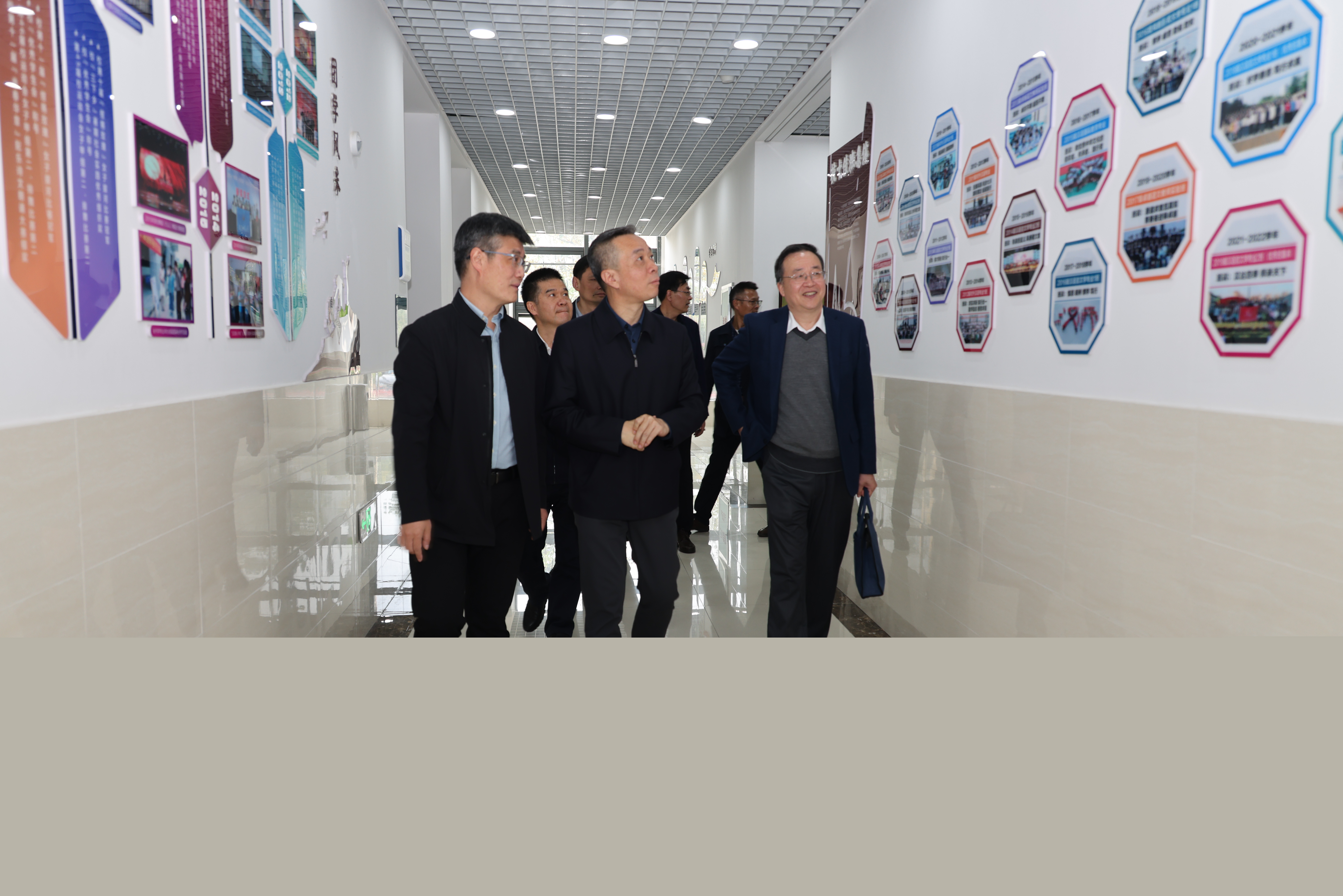 康教授在调研中观看了文学院文化墙,项念东院长介绍了学院的发展历程、资深专家学者以及人才培养等方面取得的成绩;随后,康教授参观了教育部人文社会科学重点研究基地安徽师范大学中国诗学研究中心成果展,胡传志主任在简要介绍基地办公环境、人员配置、藏书资源、学术交流与社会服务等情况的基础上,重点汇报了基地近年来开展的科研工作与取得的重要成果。康教授对文学院、中国诗学研究中心开展的工作和取得的成绩给予了高度好评,认为文学院和基地底蕴深厚、名家辈出,近些年潜心育人才、扎实做科研,取得的成果喜人、发展前景可期。