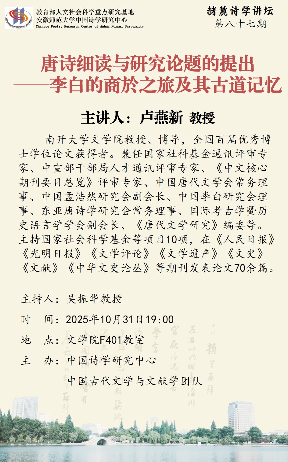 赭麓诗学讲坛第87期预告