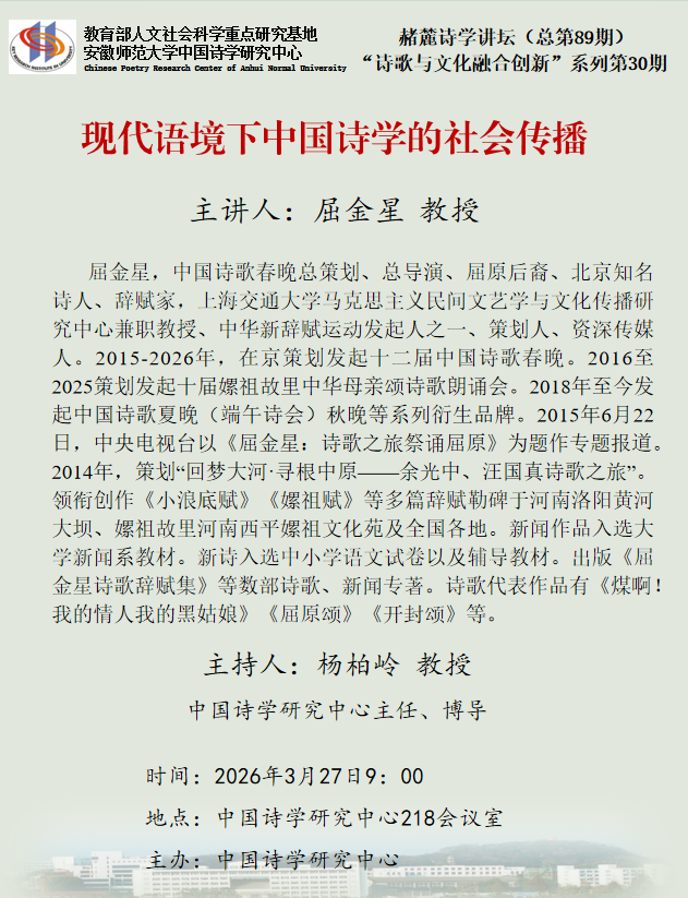 赭麓诗学讲坛第89期(“诗歌与文化融合创新”系列第30期)预告