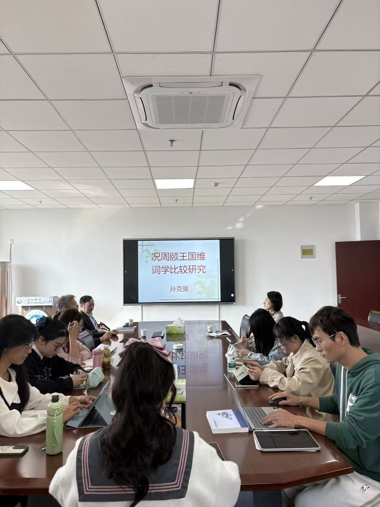 11月2日,河南大学文学院特聘教授、南开大学教授孙克强先生应邀做客“赭麓诗学讲坛”,为师生带来一场题为“况周颐、王国维词学比较研究”的专题报告。讲座由中国诗学研究中心傅宇斌教授主持,文学院中国古代文学、文献学等专业20余师生聆听了报告。