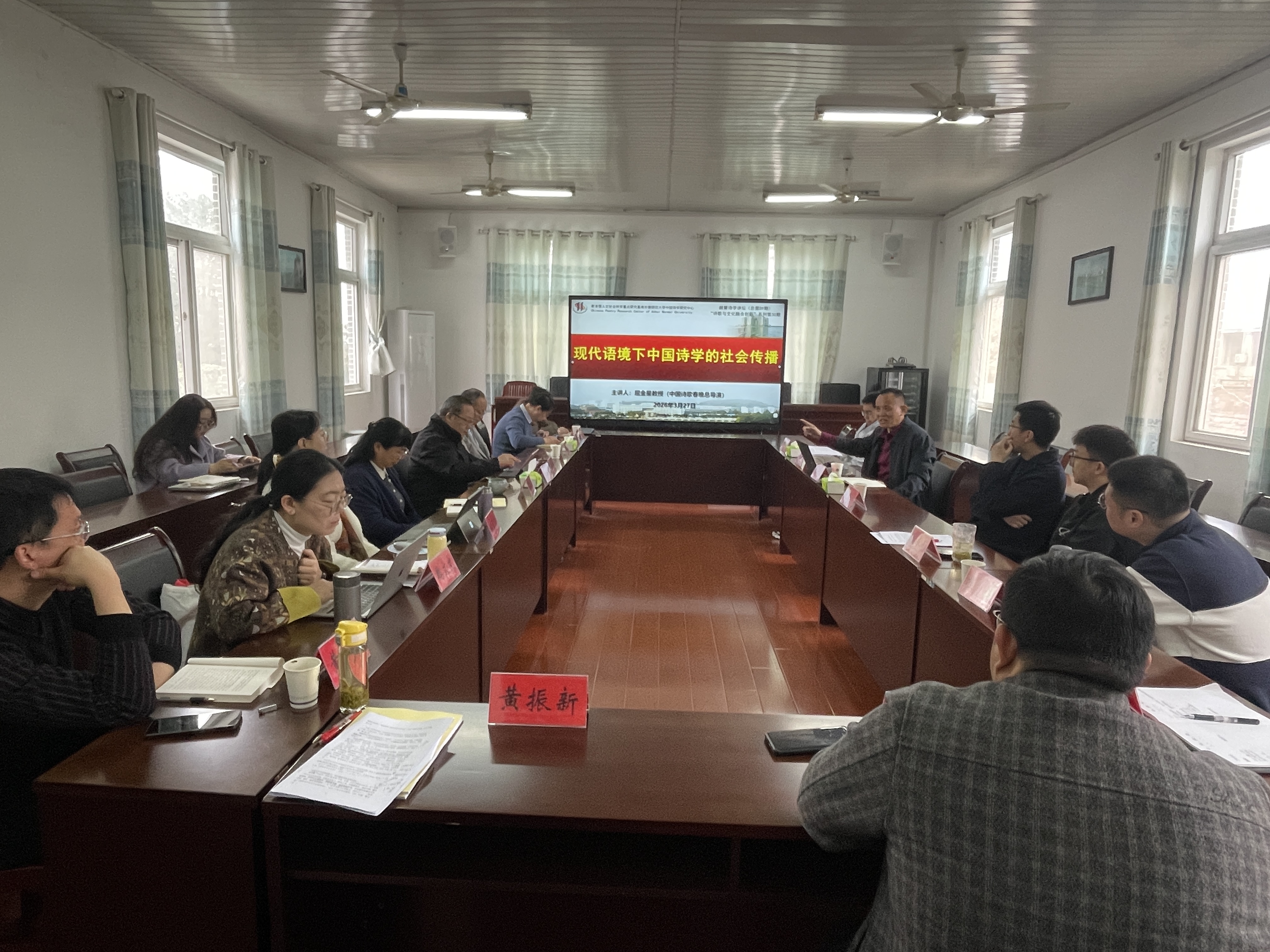 3月27日,中国诗歌春晚总导演屈金星应邀做客“赭麓诗学讲坛”(“诗歌与文化融合创新”系列第30期),主讲“现代语境下中国诗学的社会传播”。本次讲座由诗学中心主任杨柏岭教授主持,基地相关科室人员、科研人员及部分博士研究生参加了交流。