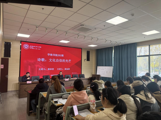 讲座最后,主持人胡承佼教授作总结发言。他表示,屈老师的讲座不仅是一场学术盛宴,更是一次深刻的文化洗礼。我们不仅是诗歌的学习者、研究者,更应成为诗歌的传承者、创新者,要以诗为笔,在新时代书写文化自信的归途。
