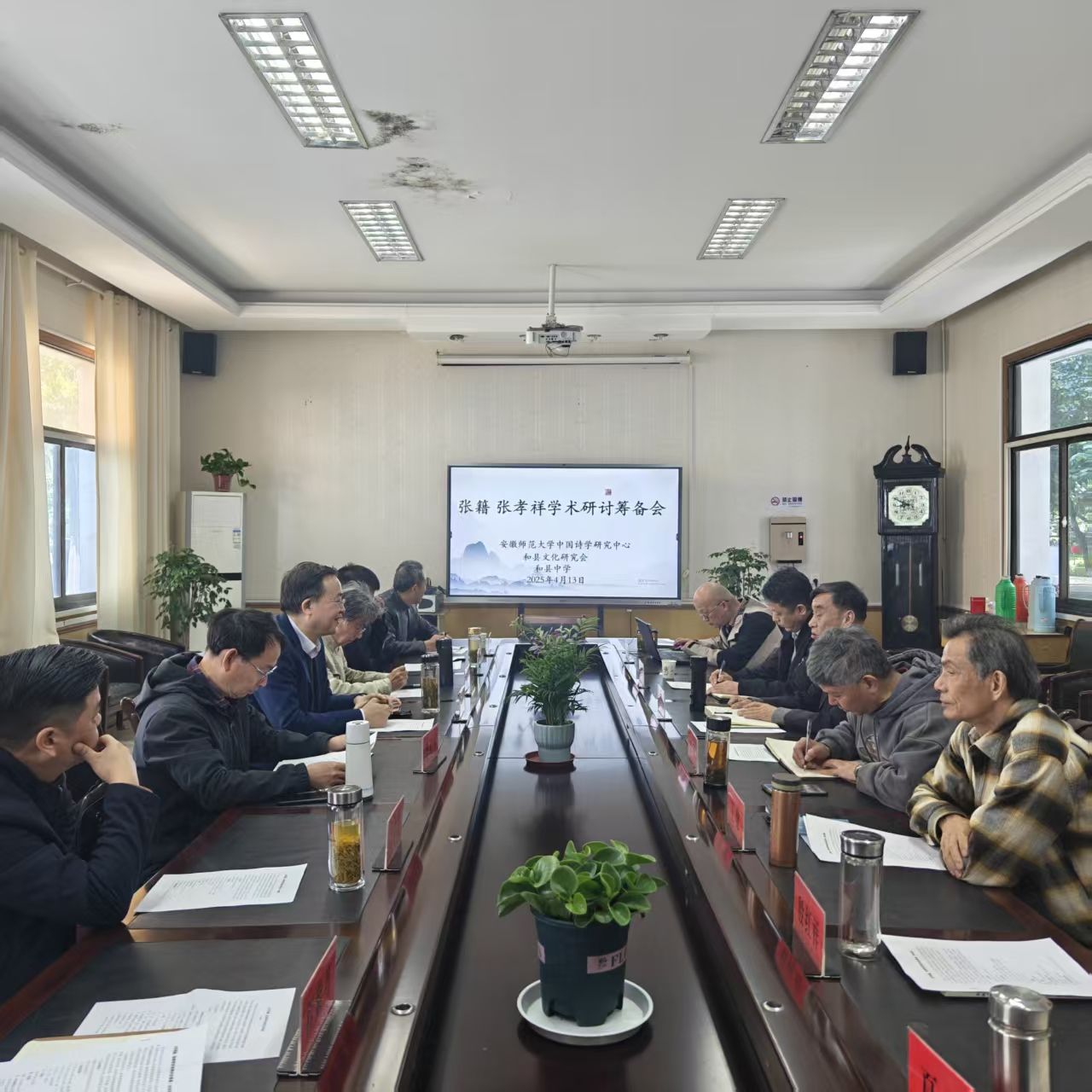 4月13日,中国诗学研究中心主任胡传志教授应邀请参加张籍张孝祥学术研讨会筹备会。巢湖学院徐礼节教授、和县县委宣传部副部长刁春弟及和县政协、和县文化研究会、和县中学的有关人员参加会议,会议由和县文化研究会会长薛从军主持。