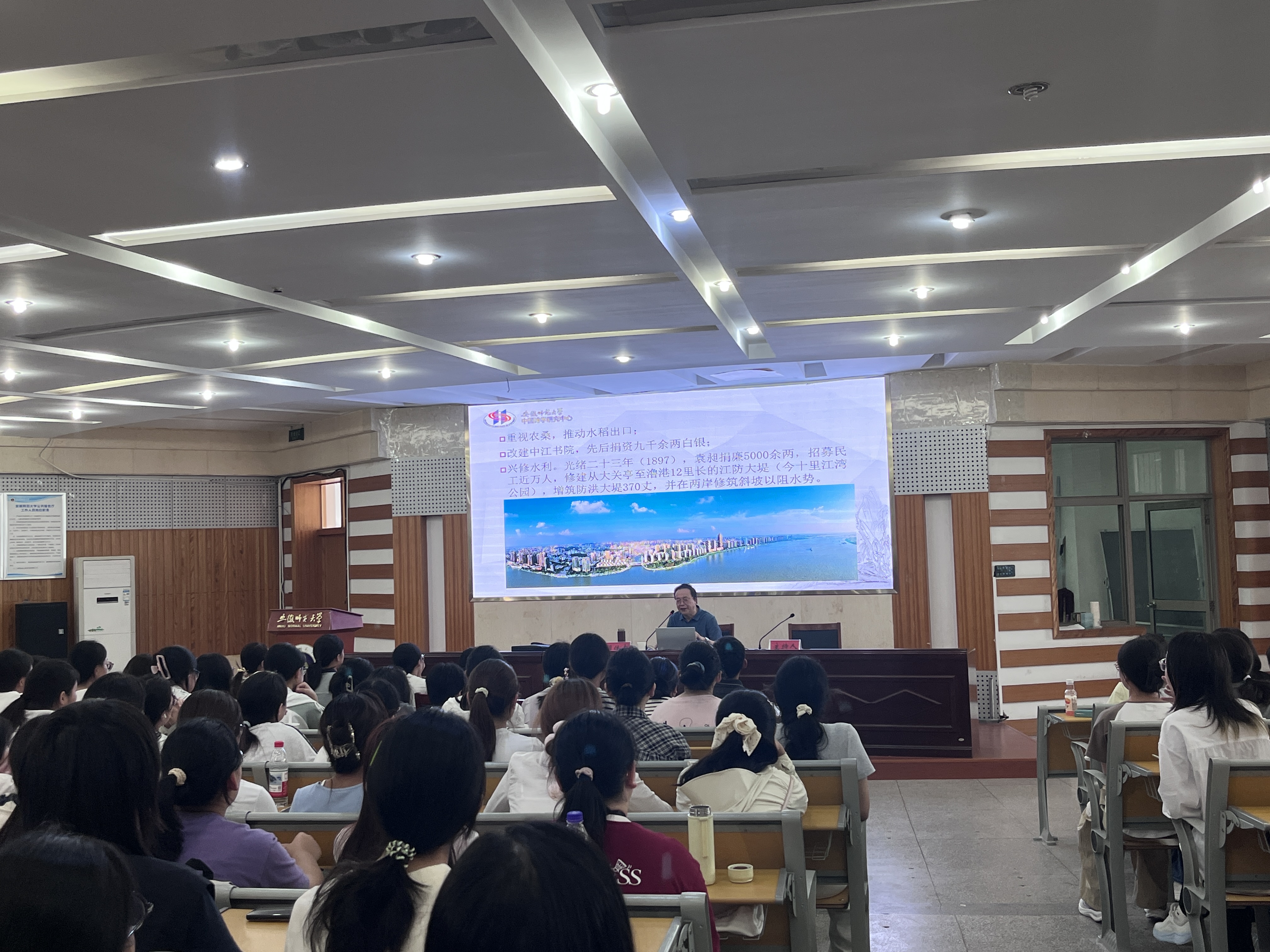 讲座伊始,胡传志教授从学生熟悉的校园周边讲起,以袁泽桥、十里江湾公园为引,讲述了清代芜关道台袁昶修堤防洪、兴学济民的感人事迹,并以其诗歌《重修滴翠轩寄题》展现其文治情怀。随后,他介绍了南宋状元张孝祥捐田凿湖、建设镜湖的佳话,以及其词作《蝶恋花·怀于湖》中对芜湖山水的深情寄托。讲座中,胡传志教授还重点讲解了芜湖赭山与广济寺的历史渊源,提及黄庭坚、欧阳玄等文人笔下的“赭塔晴岚”,以及戴安澜将军墓所承载的爱国精神。在介绍神山、赤铸山、天门山等景点时,他结合李白、梅尧臣、杨万里等诗人的作品,生动展现了自然景观与文学意象的交融。此外,蛟矶庙、五华山、广济圩等地也通过历代诗文的点缀,呈现出丰富的历史层次与文化内涵。胡传志教授强调,文人墨客不仅以笔墨点亮山水,更以实际行动参与城市建设。他从张孝祥、欧阳玄到杨万里,指出士大夫的文化建设与民生关怀对城市发展的重要影响,鼓励新生在专业学习中关注地方文化,传承中华文脉。整场讲座史料翔实、图文并茂,既有学术深度,又贴近学生生活,现场气氛热烈。同学们纷纷表示,通过这场讲座,不仅加深了对芜湖历史文化的了解,也更坚定了作为文学院学子传承文化、书写时代的责任与使命。